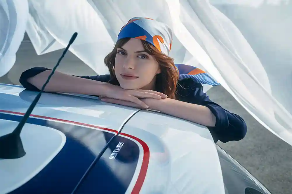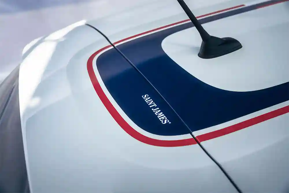 聯(lián)名版C3也延續(xù)了航海風(fēng)格,車身采用了雙色設(shè)計(jì),車頂還帶有 Saint James 的海軍藍(lán)裝飾條與紅色勾邊。