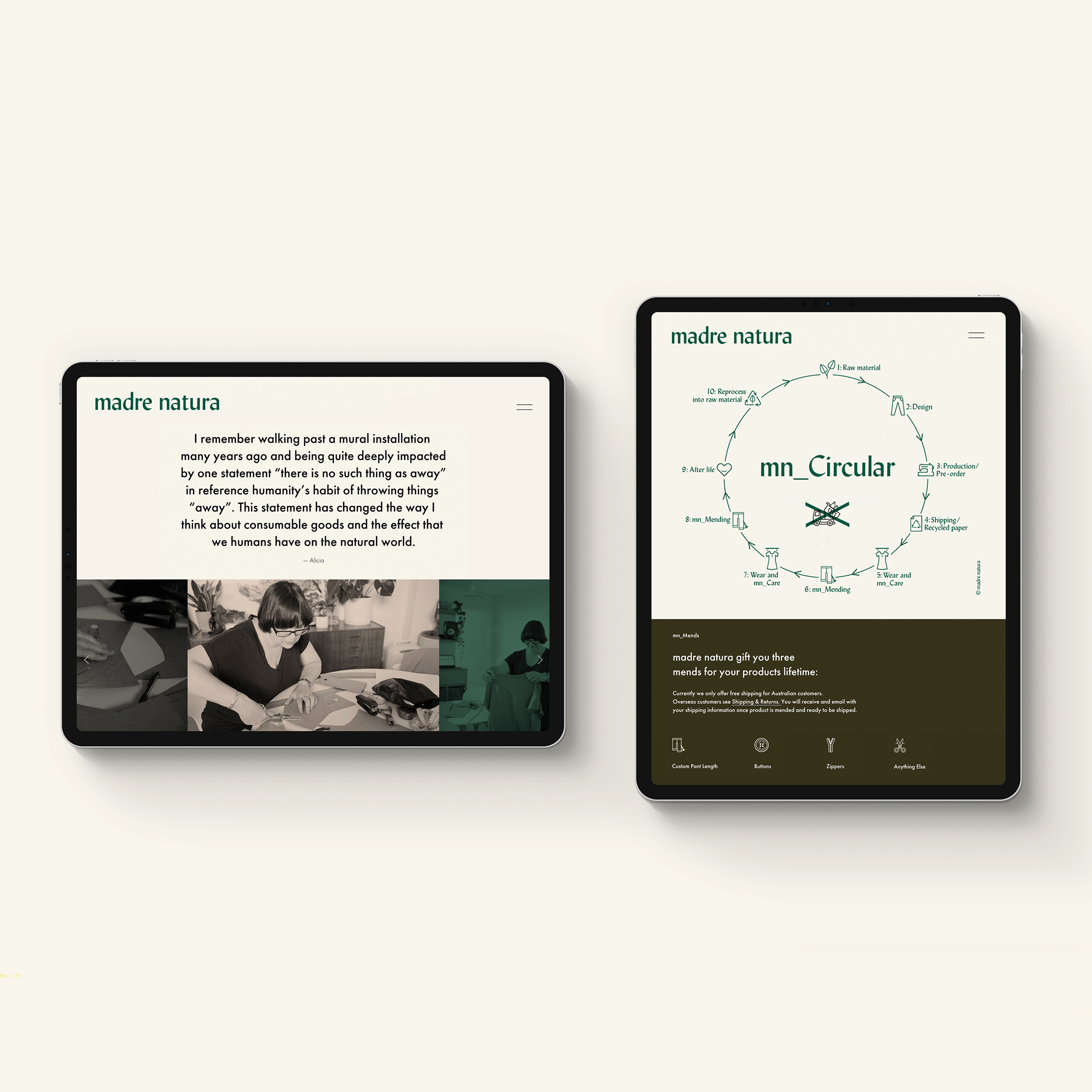 所有包裝(例如吊牌,細(xì)繩和印刷單)均使用再生紙和環(huán)保油墨制成,每份訂單均附有詳細(xì)的保養(yǎng)指南,以使您的服裝使用壽命盡可能長(zhǎng)。如果您的madre natura產(chǎn)品的壽命超過(guò)了其壽命,則該品牌鼓勵(lì)您將其發(fā)回去,以便將其回收再利用到其下一個(gè)系列中。
