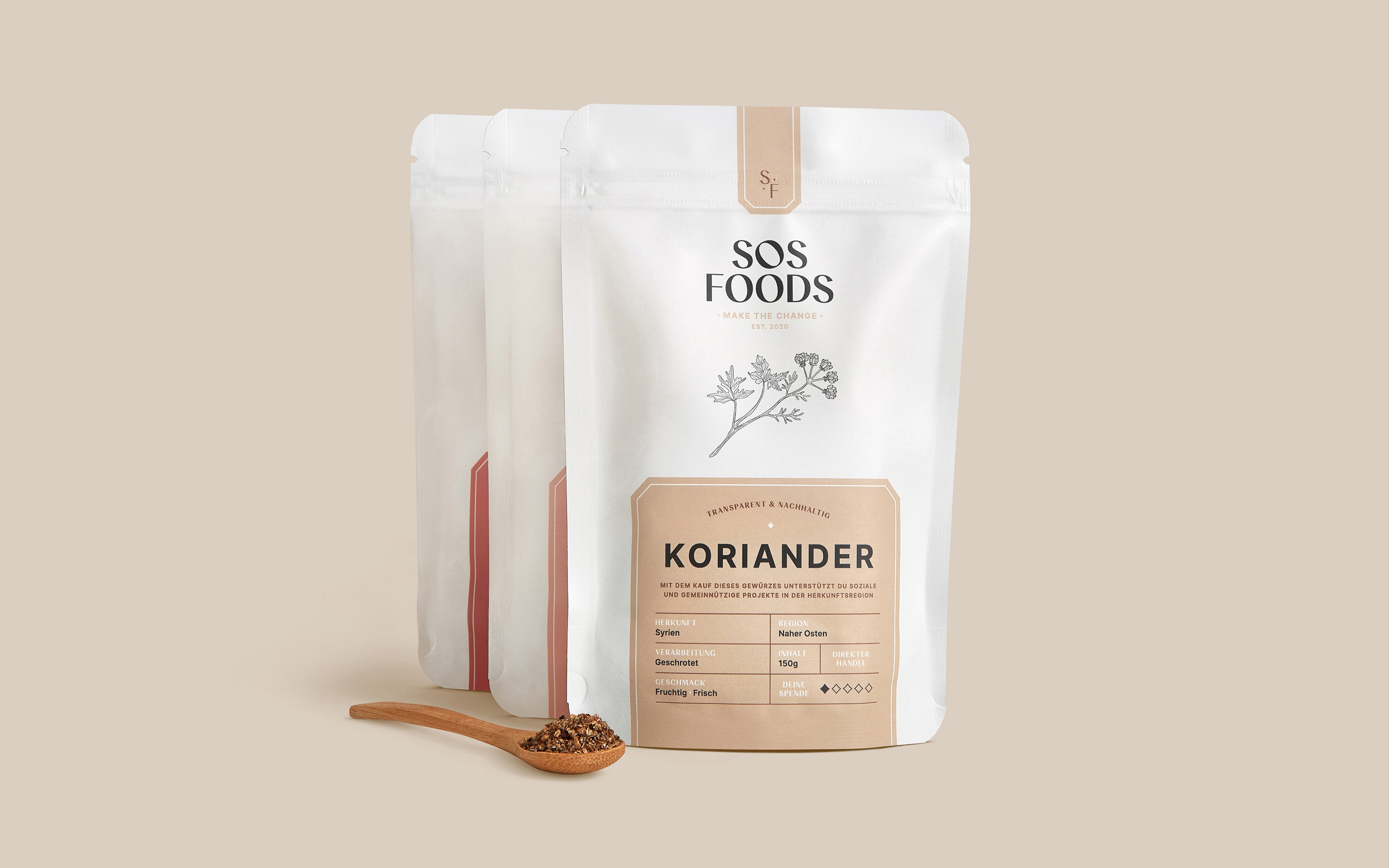 天然產(chǎn)品、與公平條件的個(gè)人接觸、可持續(xù)的包裝解決方案和透明的捐贈(zèng)出版物——帶著這一使命,兩位創(chuàng)始人 Felix 和 Rami 希望提高對(duì)食品行業(yè)不滿的認(rèn)識(shí)并重新建立公平貿(mào)易。此外,每售出一次產(chǎn)品,就有20%的營(yíng)業(yè)額流入原產(chǎn)地的社會(huì)項(xiàng)目,以直接幫助現(xiàn)場(chǎng)和支持人民。該項(xiàng)目以來(lái)自敘利亞的 8 種香料開(kāi)始:孜然、茴香、辣椒粉、辣椒、香菜、巴哈拉特、扎塔爾和月桂葉。